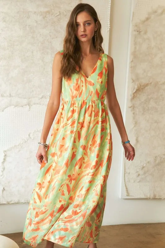 ADORA Crisscross Two-Tone V-Neck Maxi Dress