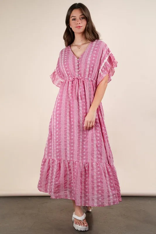 VERY J Embroidered Boho Ruffled Midi Dress
